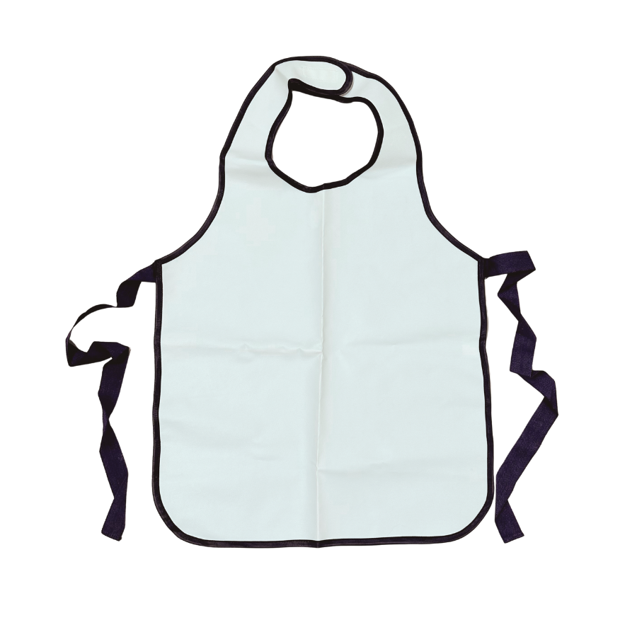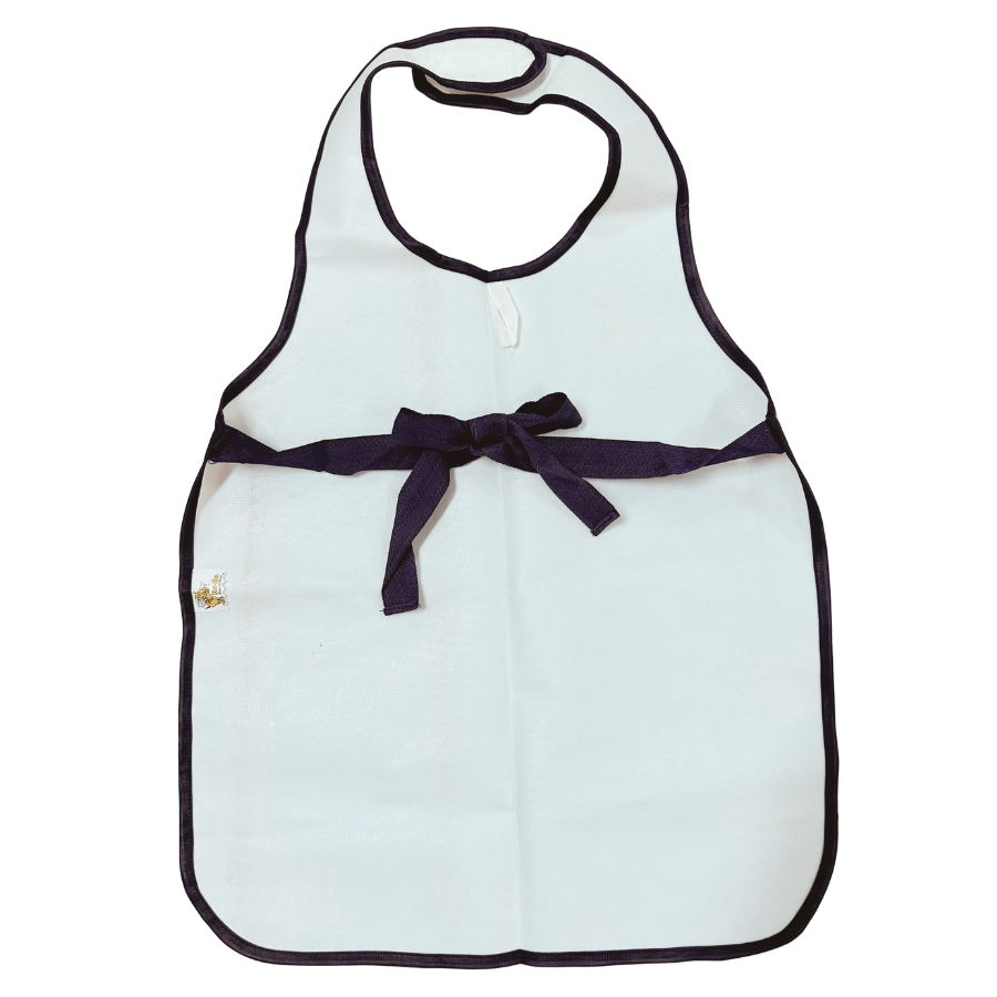 Knytband av 25 mm bomullsband till midjan och kardborreband i nacken.