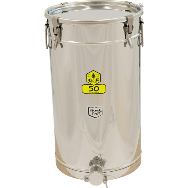 Blankpolerad, rostfri stålbehållare av hög kvalitet. Alla behållare kan levereras med löst liggande lock. Den mindre behållaren kan även levereras med tättslutande lock. Vi kan också erbjuda behållare med konisk botten och utlopp i mitten. Som tillbehör finns rostfritt stativ. Alla behållare kan levereras dubbelmantlade för värme- eller kylsystem. På alla CFM behållare sitter tappkranen helt i botten.