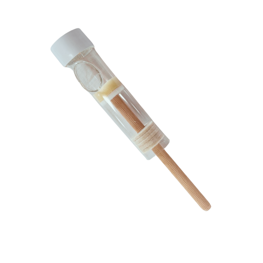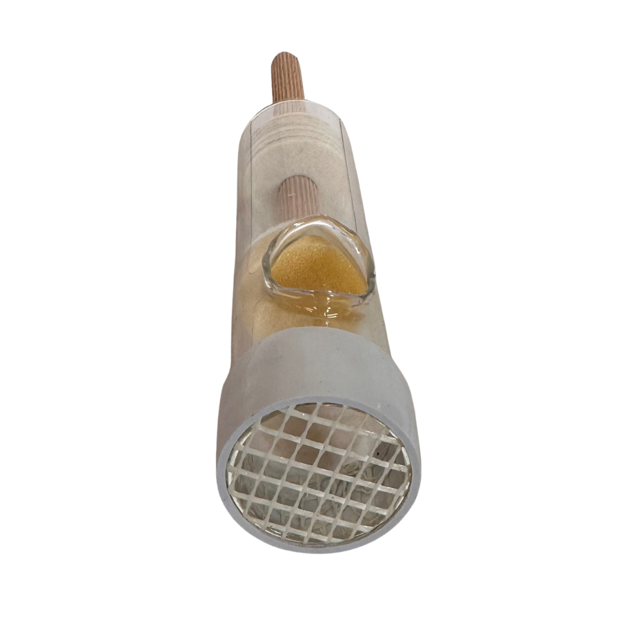 Skumgummi i botten på pinnen för att inte skada drottningen och filtringar lite högre upp.