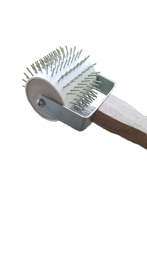 Nålvals till ljunghonung. Valsen rullas fram och tillbaka över ramen. Kan också användas som avtäckningsrulle. Rostfria nålar. Bekvämt trähandtag att hålla i.