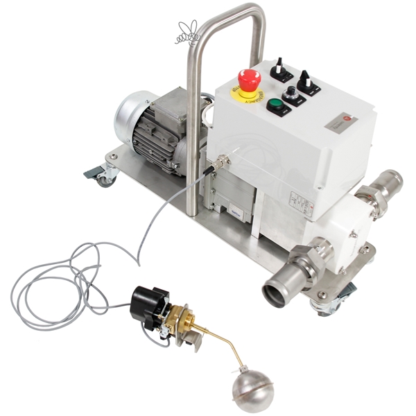 Modell med variabel hastighet och integrerad nivå switch. Denna pump är speciellt designad till pumpning av honung. Den kör med låg hastighet, 180 varv. Den är lätt att rengöras, utan verktyg, och är i övrigt underhållsfri. Basen och kopplingarna är uteslutande av rostfritt stål. Pumphuset är av livsmedelsgodkänd massiv plast med plastkugghjul. Inkluderar snabbkopplingar till 2" slangar.