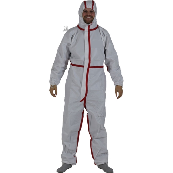 Dräkten är antistatisk och klarar vattenstänk och är utformad för att skydda mot farliga ämnen, partiklar eller flytande spray som t.ex. genom oxalsyreindunstning. Kan också användas som en engångsdräkt av biinspektörer som vill undvika föroreningar från bigård till bigård. Ska inte tvättas, strykas, renas kemiskt eller torktumlas. Luva finns på dem.