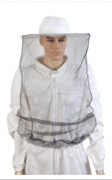 Vit nylonslöja synfält i svart tyll som är fastsydd på hattens ytterkant.